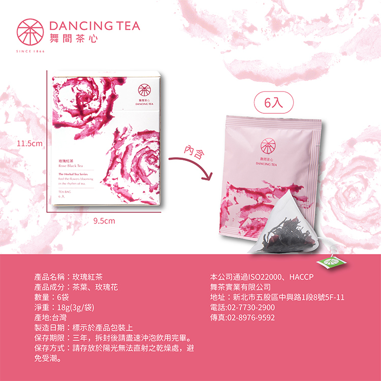 舞間茶心選自台灣栽種食用玫瑰花與嚴選台灣小葉種紅茶。濃郁甜美玫瑰香與熟果香氣紅茶結合,滋味香甜,喝出天然與好氣色。